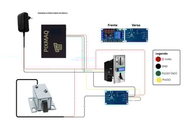 A implementação do módulo PIXMAQ em mesas de bilhar tem como objetivo a liberação automatizada do conjunto de esferas, condicionada à validação de pagamento via transação Pix. A mecânica de retenção das esferas é governada fundamentalmente por duas tipologias de atuadores: Solenoide (eletroímã) ou Motor de Passo acoplado à gaveta.